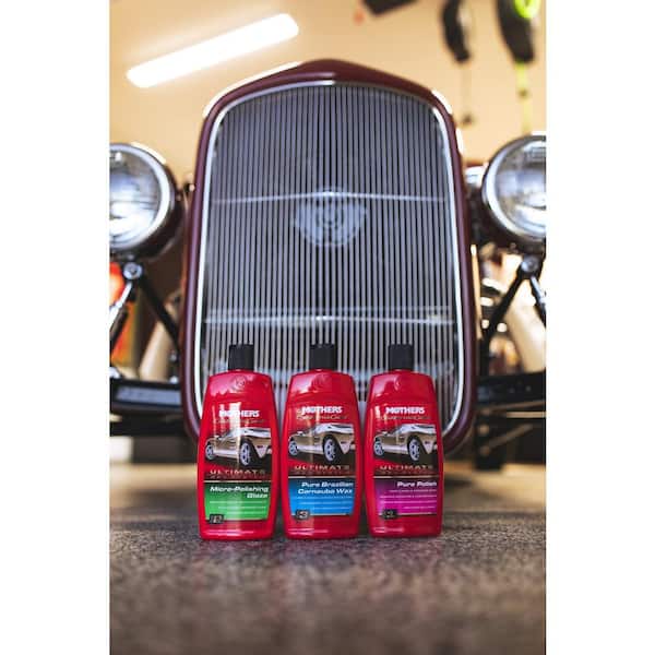 Mothers Pure Polish is the foundation of the 3-step Ultimate Wax System, restoring color and brilliance by removing oxidation, contaminants, micro-scratches, swirls, water spots and other blemishes from your paint or clearcoat. This initial step deep cleans the surface of your vehicle, paving the way for a final micro-polish and finishing wax, creating the ultimate shine. Complete the job with step 2, the micro-polishing glaze, and then complete with step 3, the pure Brazilian carnauba wax.